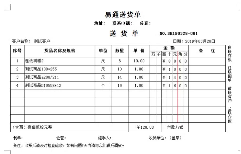 2.送货单格式可自行设计修改